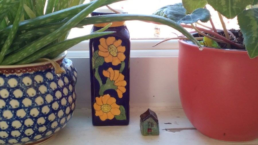 One person’s too-many-possessions could be another person’s delight! My friend Mary displays a collection of hand-blown glass spheres suspended in a row in her front window where they catch the light. They are beautiful! They are joyful! My own front window is unadorned. I prefer not to dust. If I could easily ignore the dust in my house, I would have beautiful things on every surface. Because I can’t comfortably ignore dust in my house for long, I compromise and have only a few things.